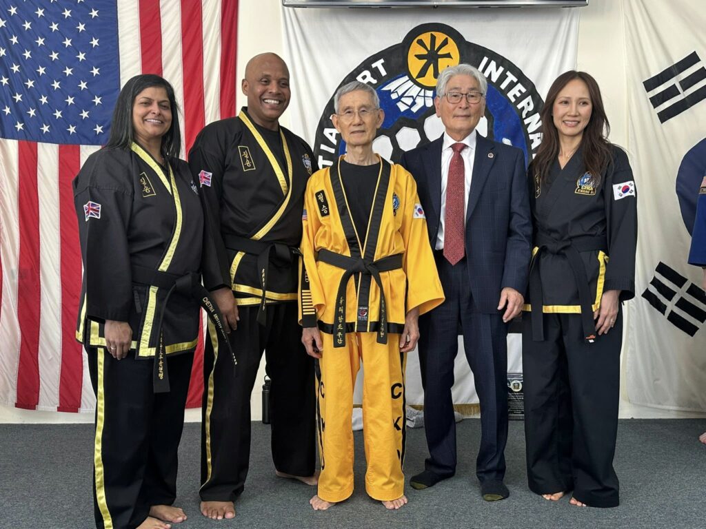 Sahjonim Kwang Jo Choi presenting Grandmaster Keith Banfield with his 8th. Dan belt.